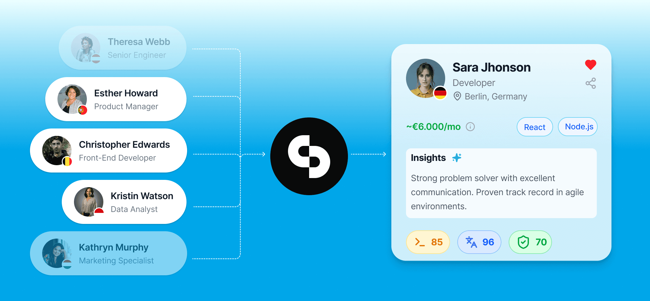 Let intelligent automation connect you with the top 1% of professionals worldwide — ready to join your team wherever you are. Our tool has been used to hire top tech professionals in development, AI, crypto, sales, marketing, design and creative roles.