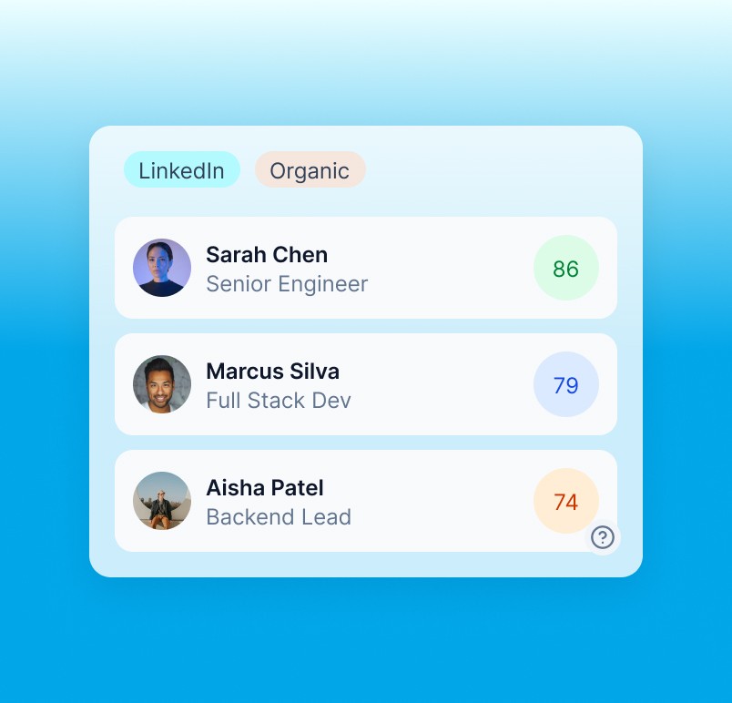 Get a qualified pipeline automatically, sourced, screened, and ranked for your role before you ever open a resume.